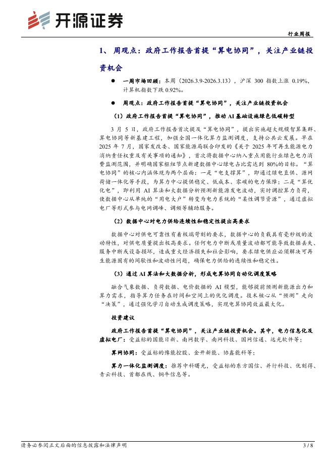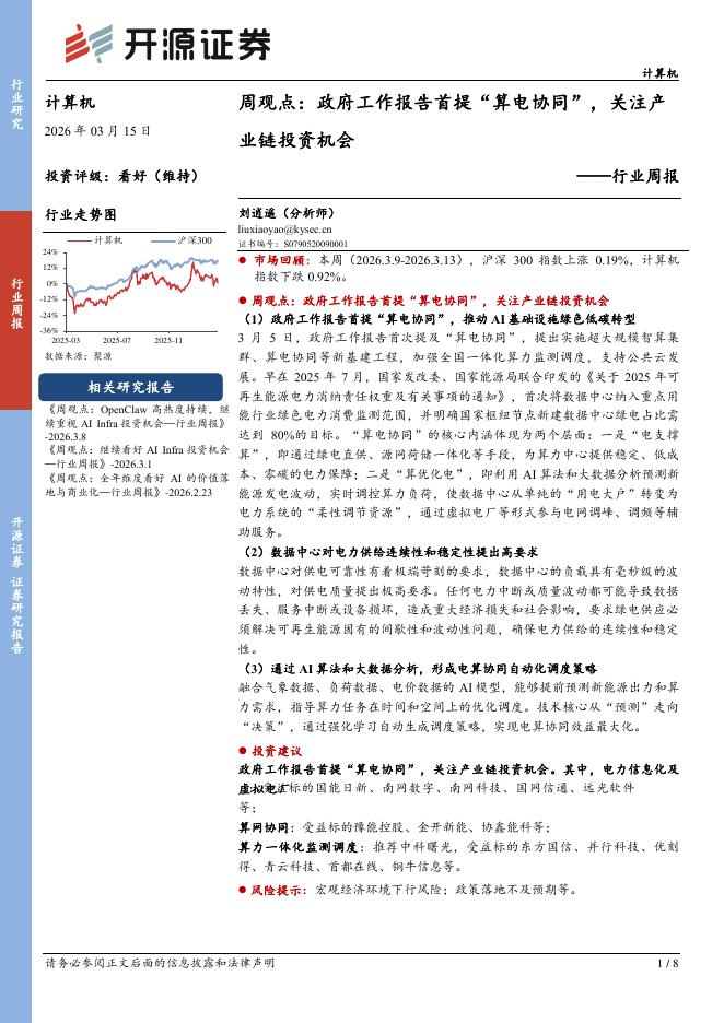开源证券:计算机行业周报-周观点:政府工作报告首提“算电协同”,关注产业链投资机会.pdf