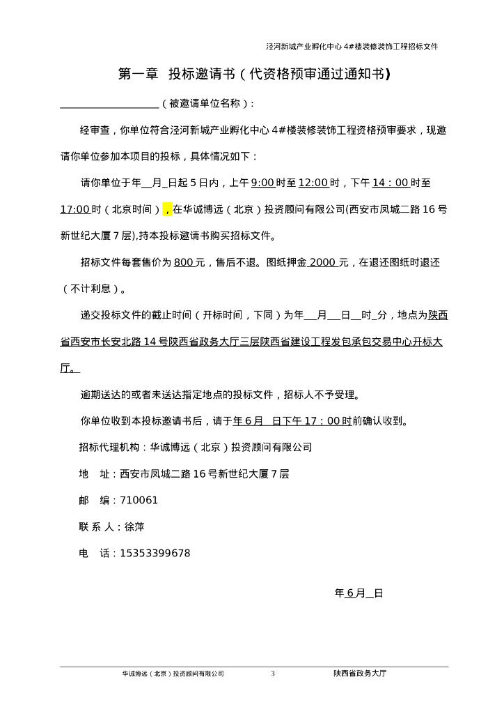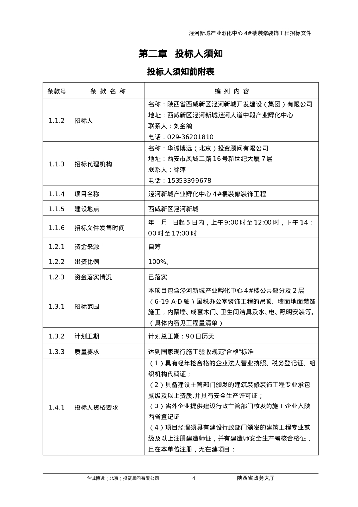 西咸新区泾河新城孵化中心装修工程招标文件.doc