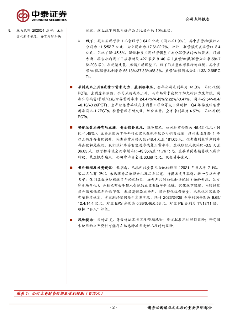 中泰证券:森马服饰(002563)-22年经营业绩承压,静待23年复苏.pdf