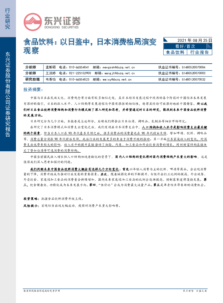 东兴证券:食品饮料行业:以日鉴中,日本消费格局演变观察.pdf
