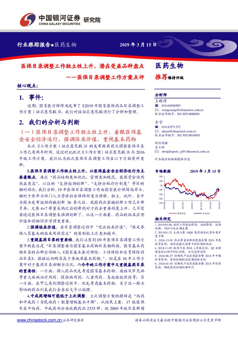 中国银河:医药生物行业跟踪报告:医保目录调整工作方案点评-医保目录调整工作独立性上升,潜在受益品种盘点.pdf