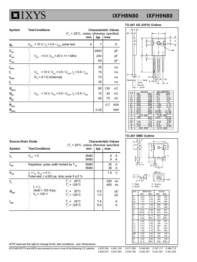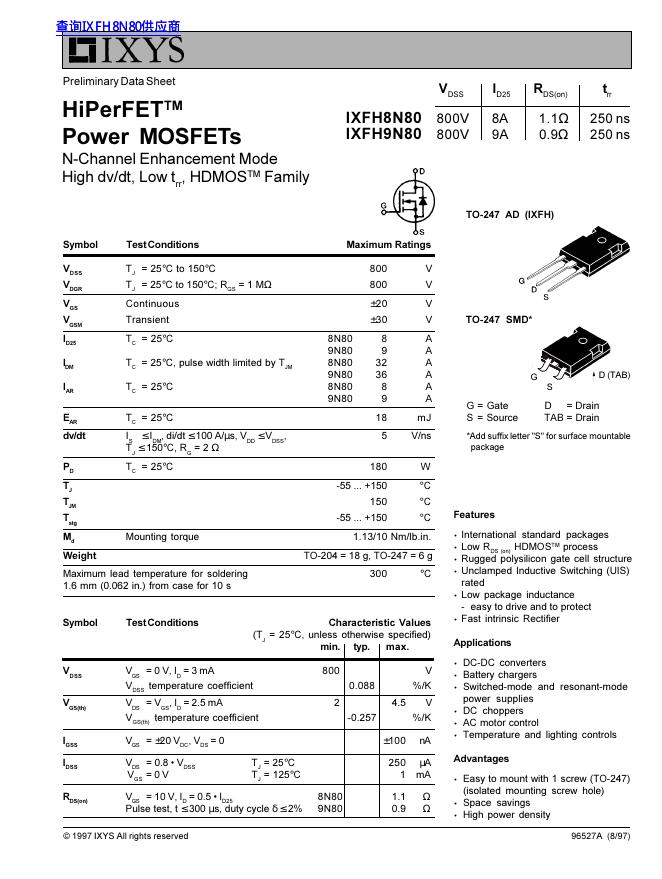 IXYS IXFH8N80 IXFH9N80 数据手册.pdf