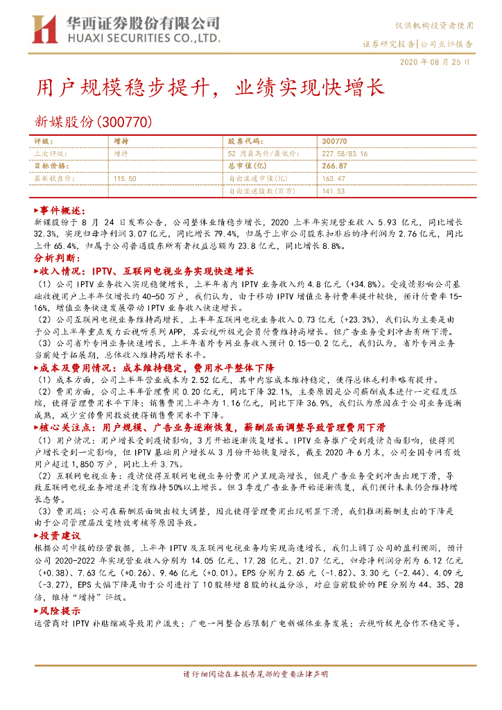 华西证券:新媒股份(300770)-用户规模稳步提升,业绩实现快增长.pdf