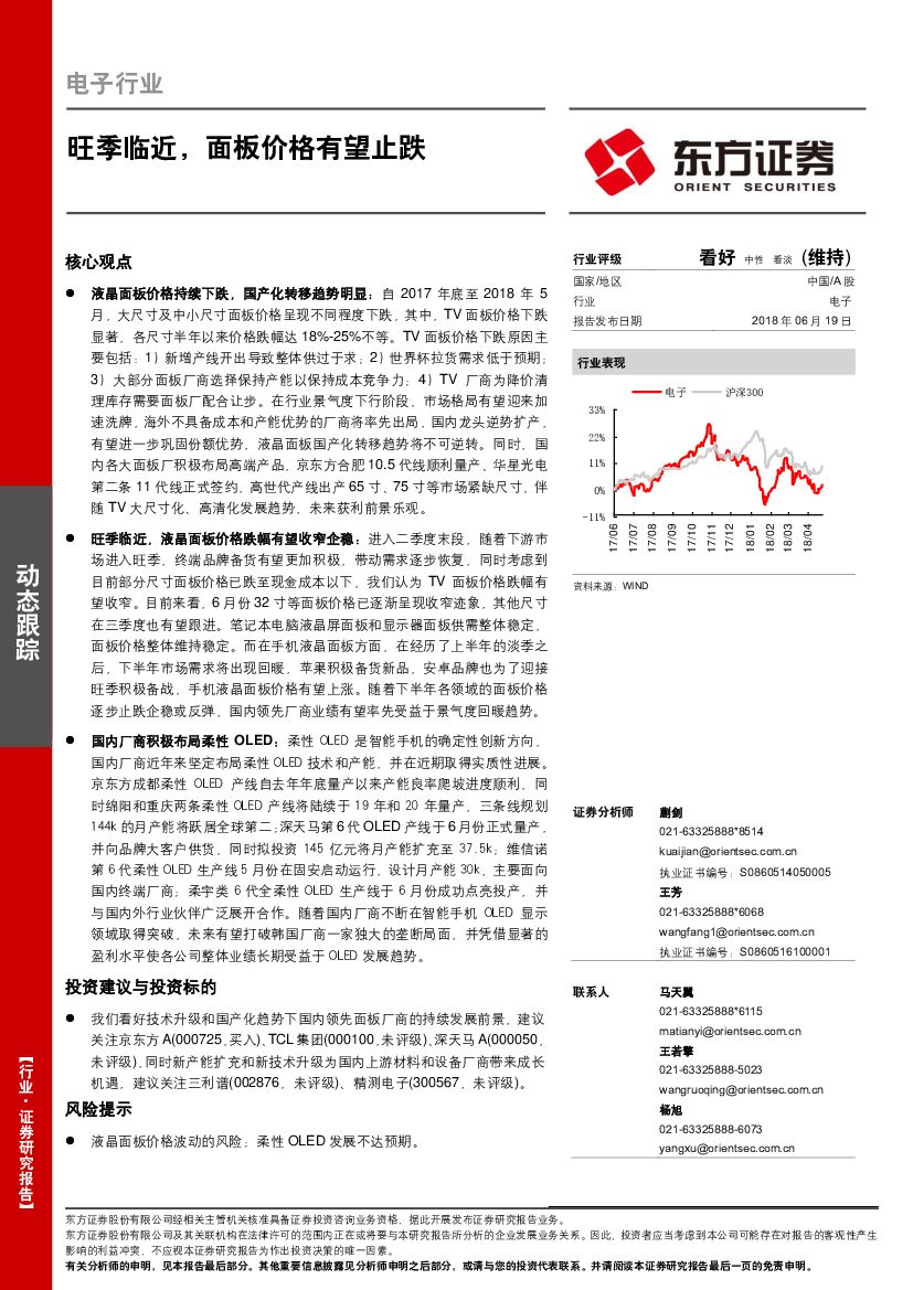东方证券:电子行业动态跟踪:旺季临近,面板价格有望止跌.pdf