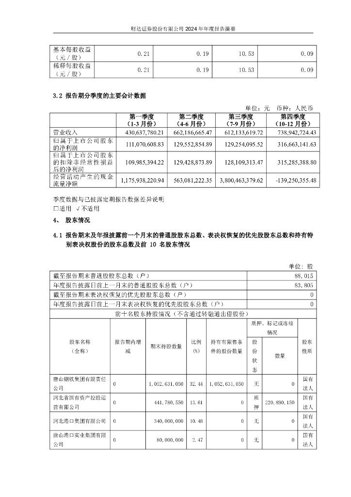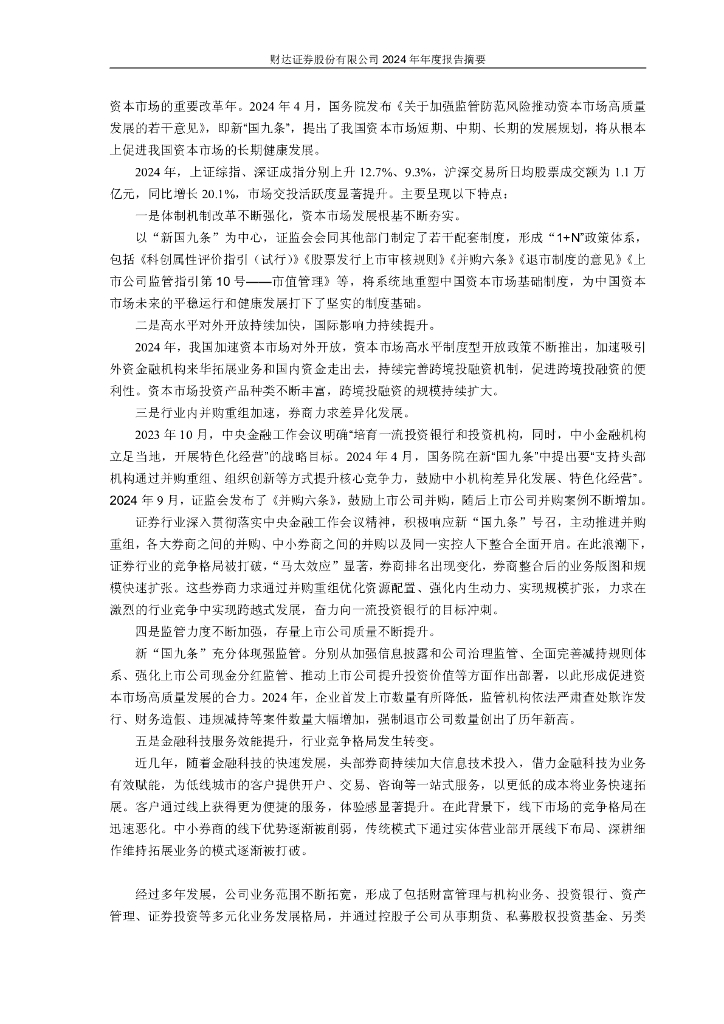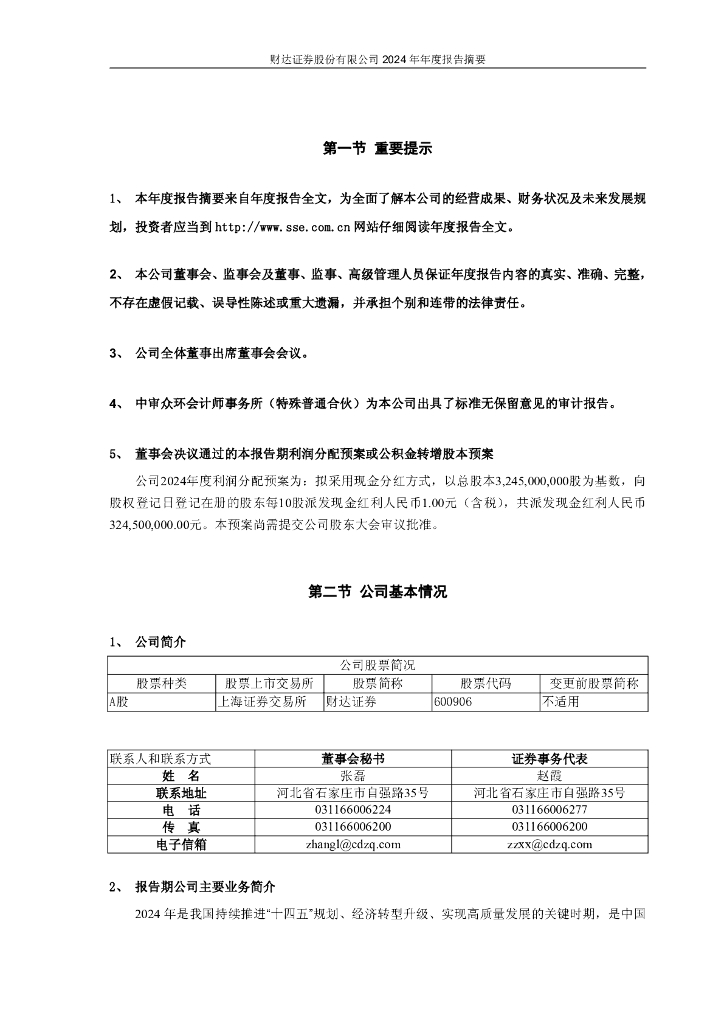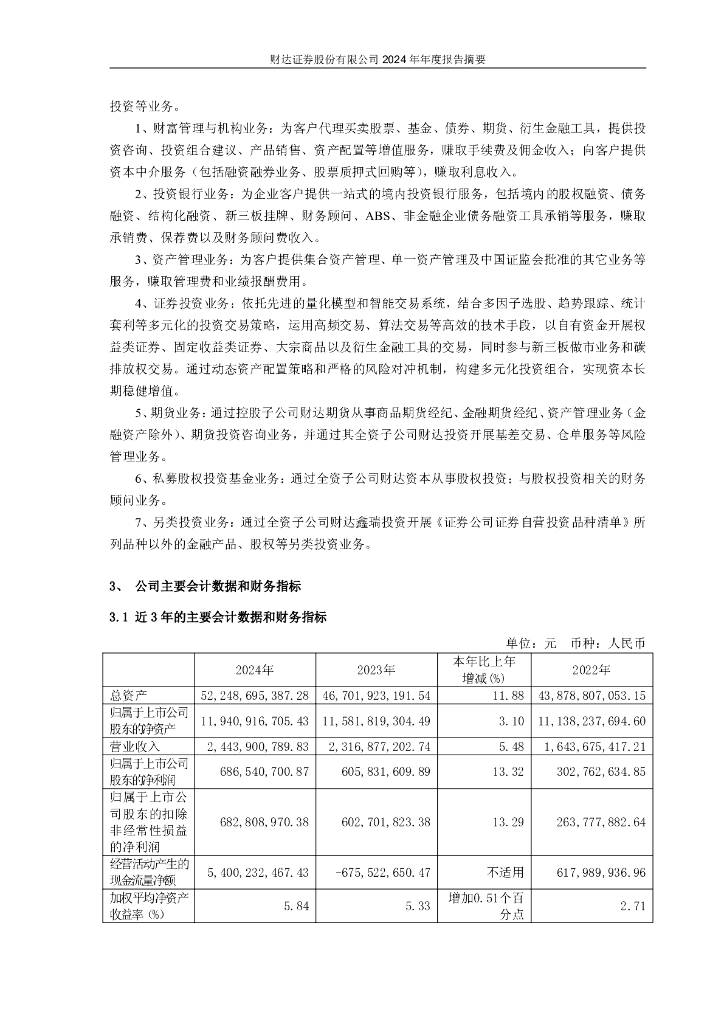 600906-财达证券:财达证券股份有限公司2024年年度报告摘要.pdf
