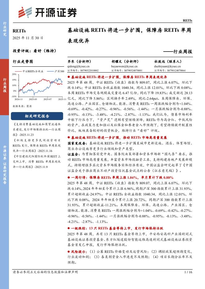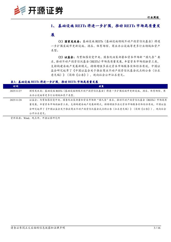 开源证券:REITs行业周报:基础设施REITs将进一步扩围,保障房REITs单周表现优异.pdf