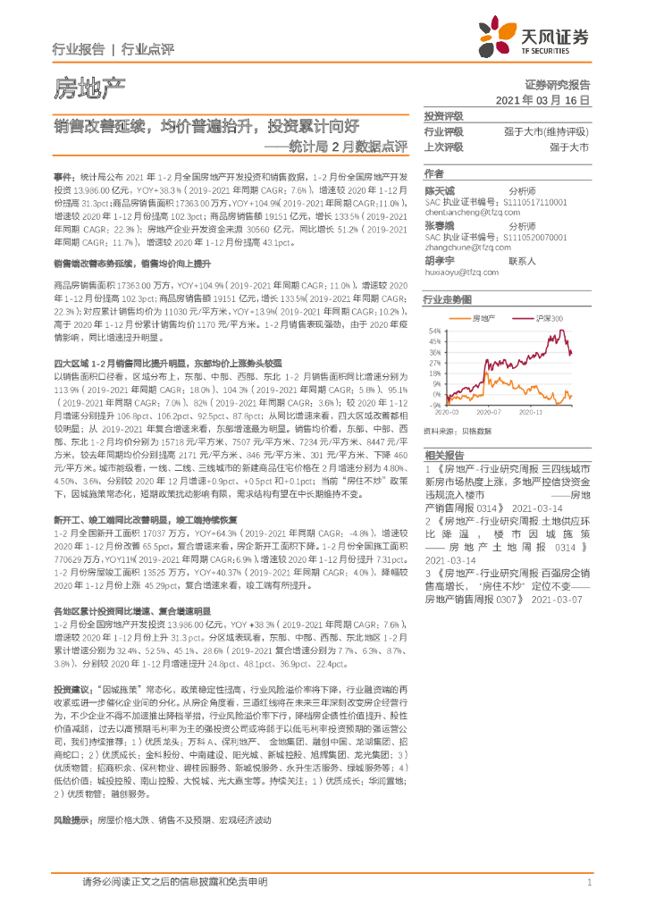 天风证券:房地产统计局2月数据点评:销售改善延续,均价普遍抬升,投资累计向好.pdf