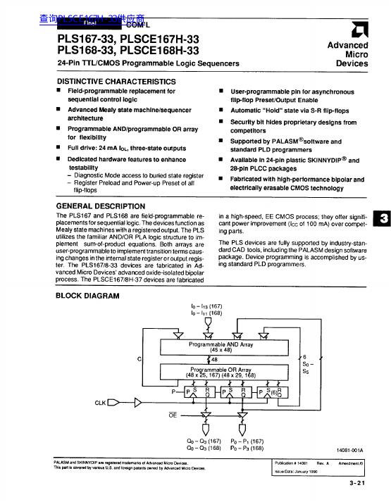 Advanced Micro Devices PLS167-33, PLSCE167H-33, PLS168-33, PLSCE168H-33 数据手册.pdf