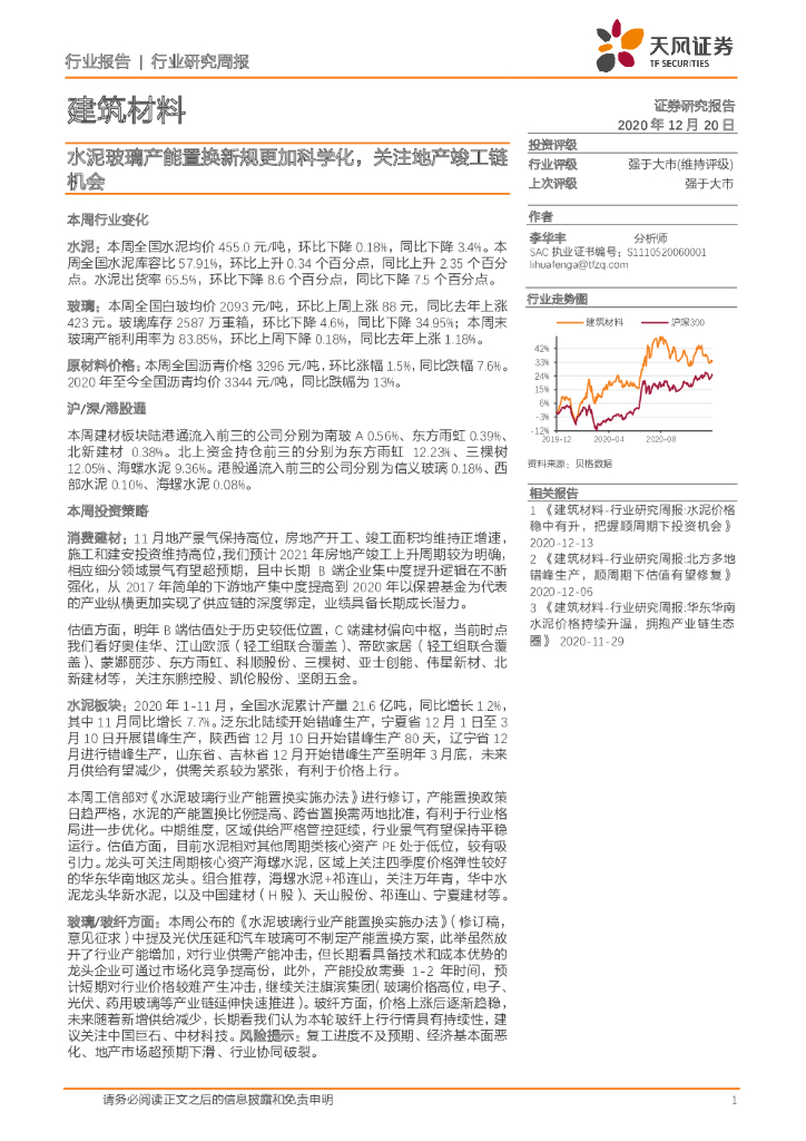 天风证券:建筑材料行业研究周报:水泥玻璃产能置换新规更加科学化,关注地产竣工链机会.pdf