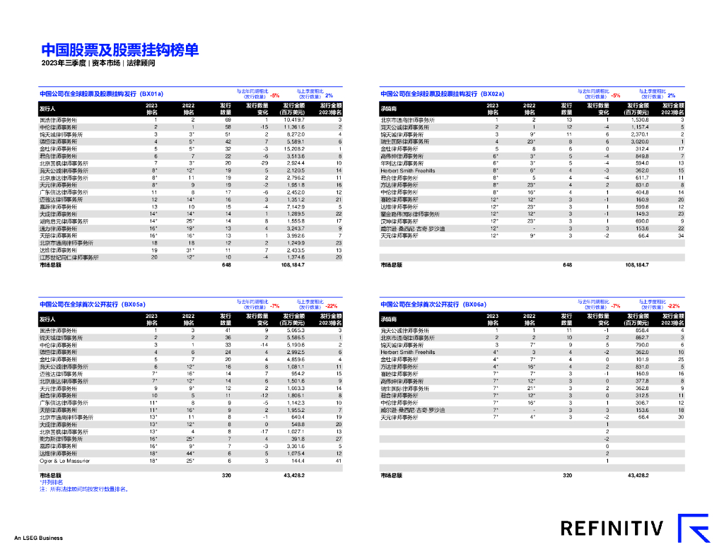 路孚特:中国资本市场报告及法律顾问榜单(2023年三季度) .pdf