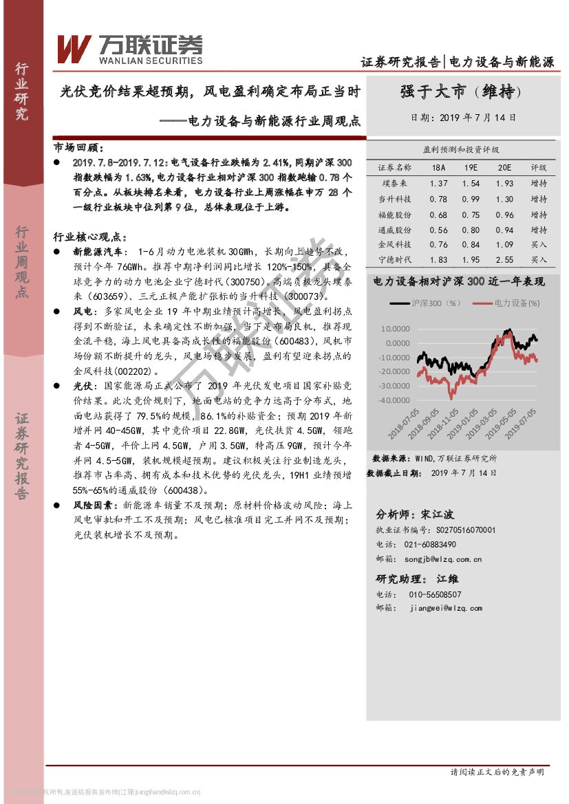 万联证券:电力设备与新能源行业周观点:光伏竞价结果超预期,风电盈利确定布局正当时.pdf