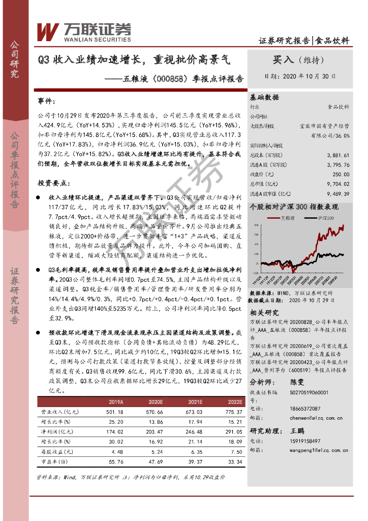 万联证券:五粮液(000858)-季报点评报告:Q3收入业绩加速增长,重视批价高景气.pdf