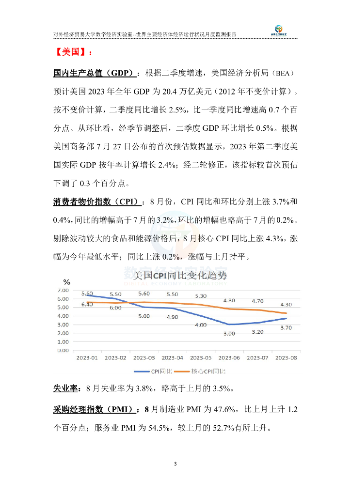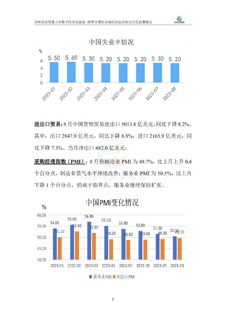 对外经济贸易大学:世界主要经济体经济运行状况月度监测报告(2023年8月).pdf