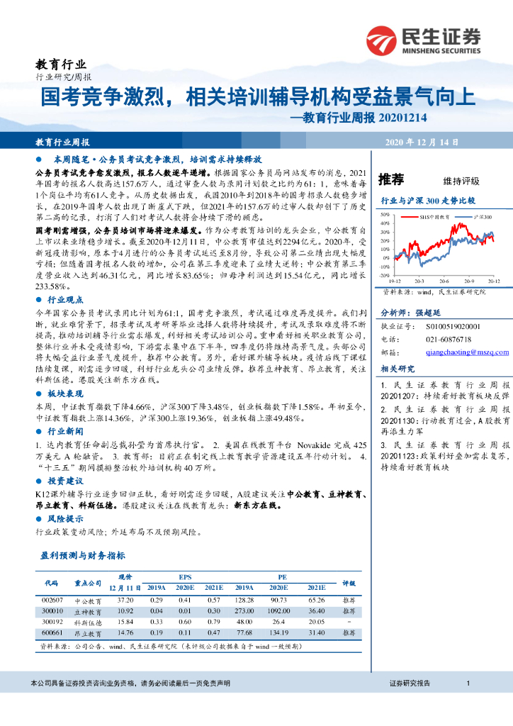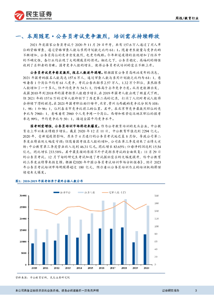 民生证券:教育行业周报:国考竞争激烈,相关培训辅导机构受益景气向上.pdf