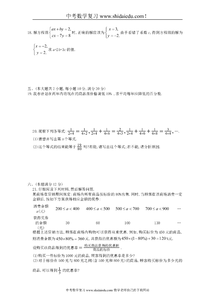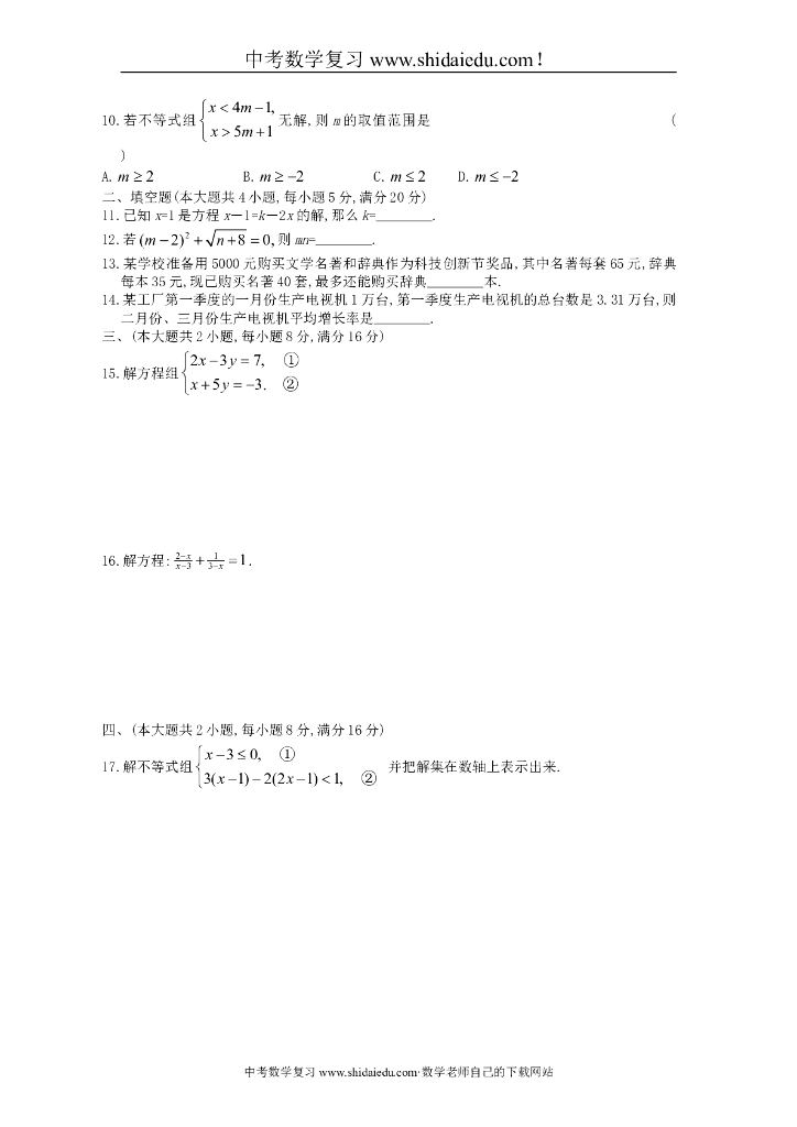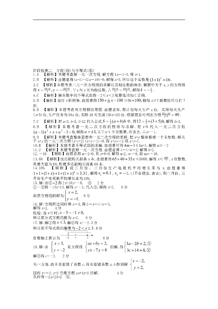 安徽省中考数学精品复习试卷:方程(组)与不等式(组)(含答案解析).doc