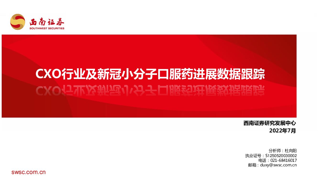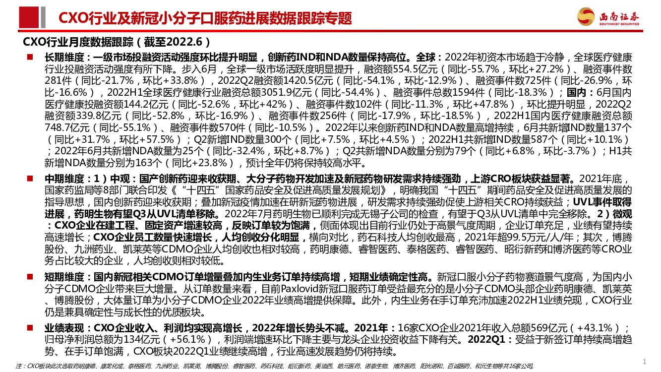 西南证券:医药行业:CXO行业及新冠小分子口服药进展数据跟踪.pdf