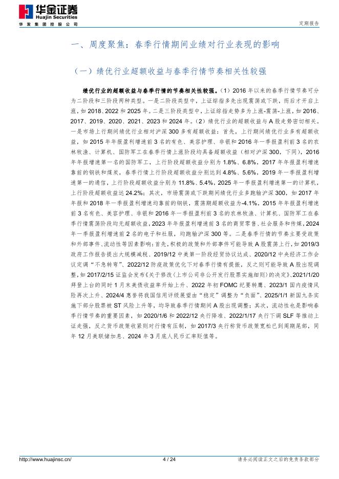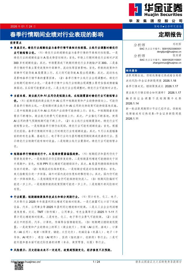 华金证券:春季行情期间业绩对行业表现的影响-260125.pdf