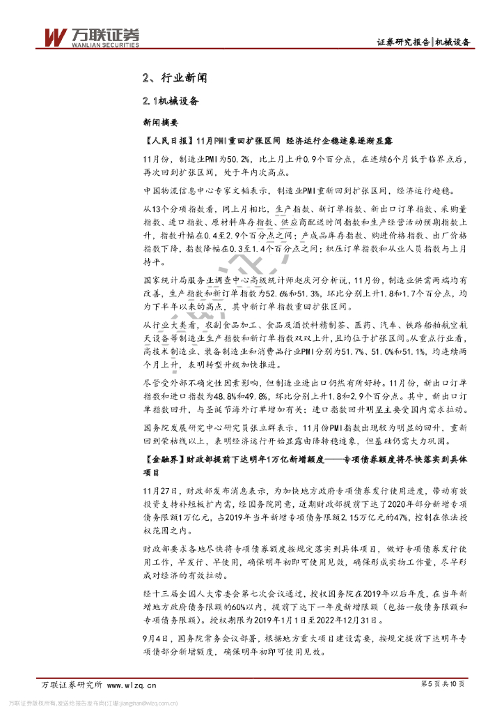 万联证券:机械设备行业周观点:PMI重回扩张区间,专项债额度提前下达.pdf