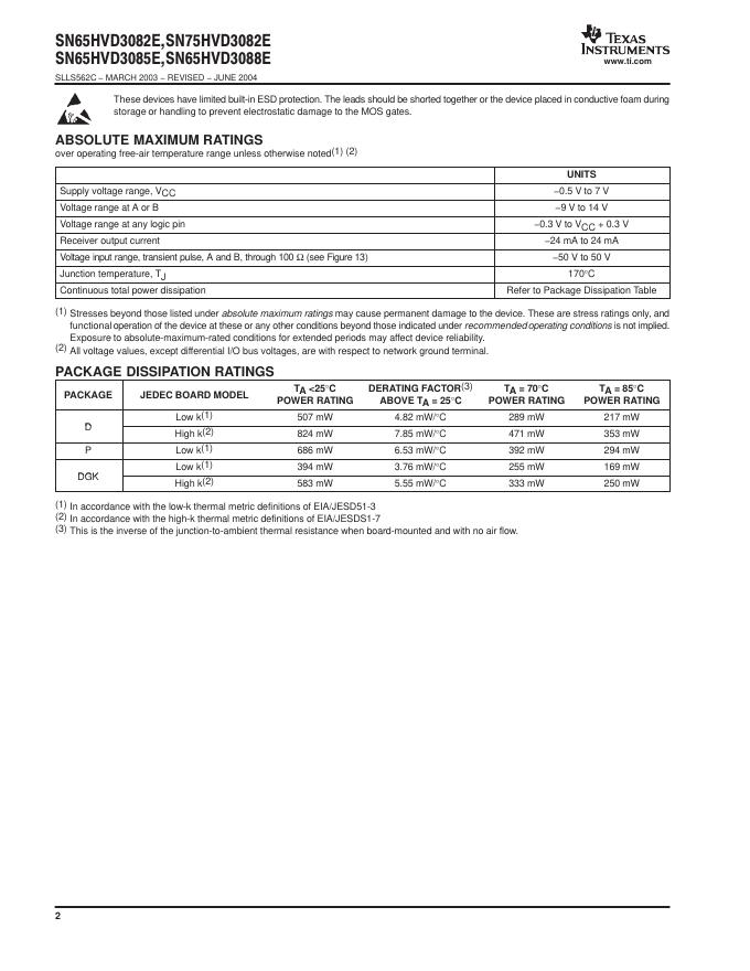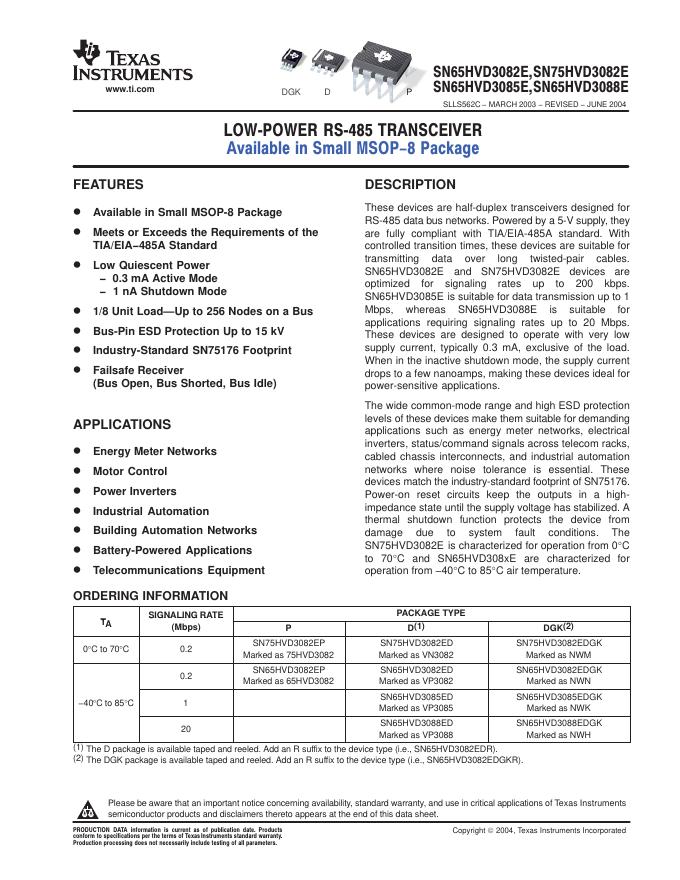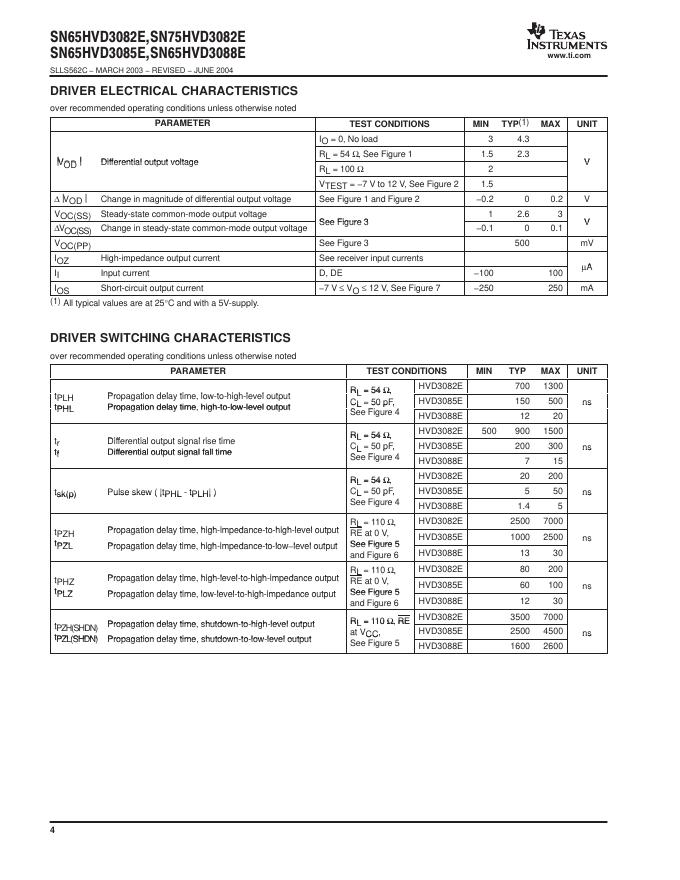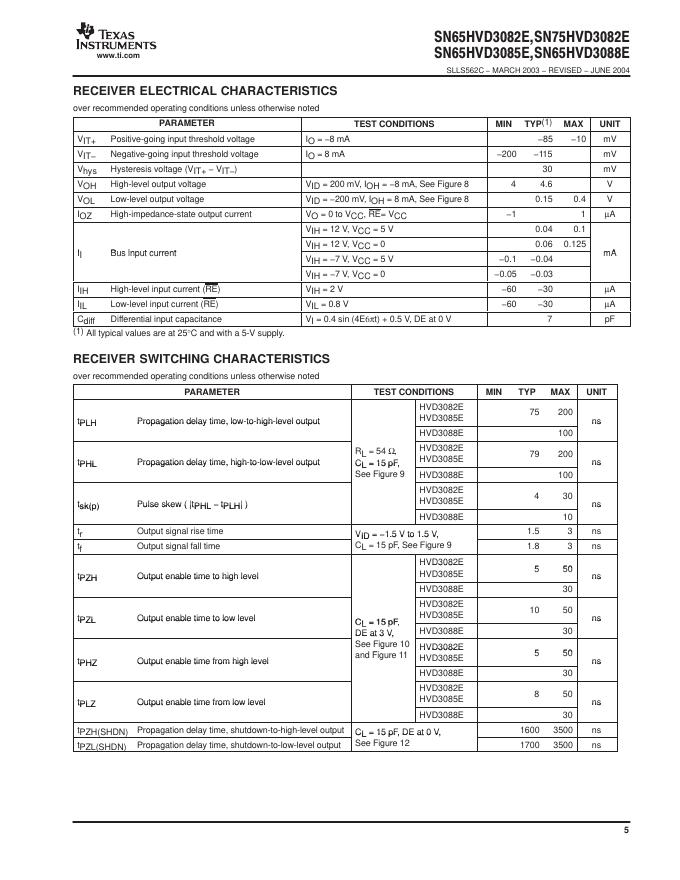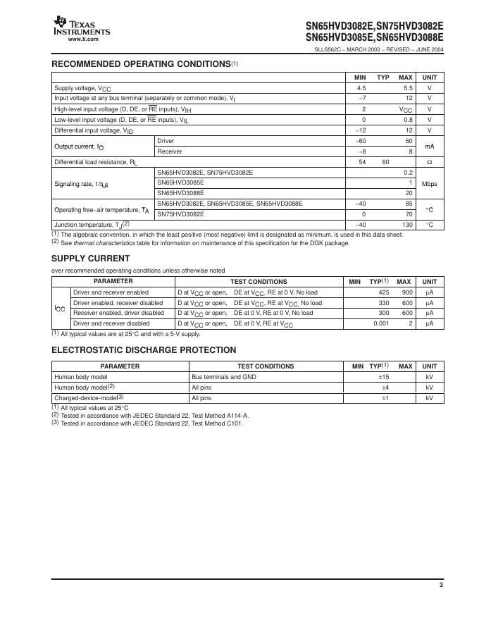 TEXAS INSTRUMENTS SN65HVD3082E/SN75HVD3082E/SN65HVD3085E/SN65HVD3088E 数据手册.pdf