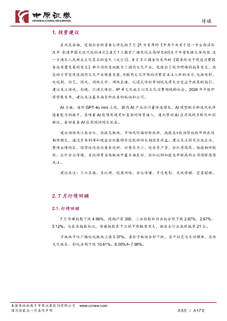 中原证券:传媒行业月报:政策发布助力文化产业发展,关注近期财报季变化.pdf