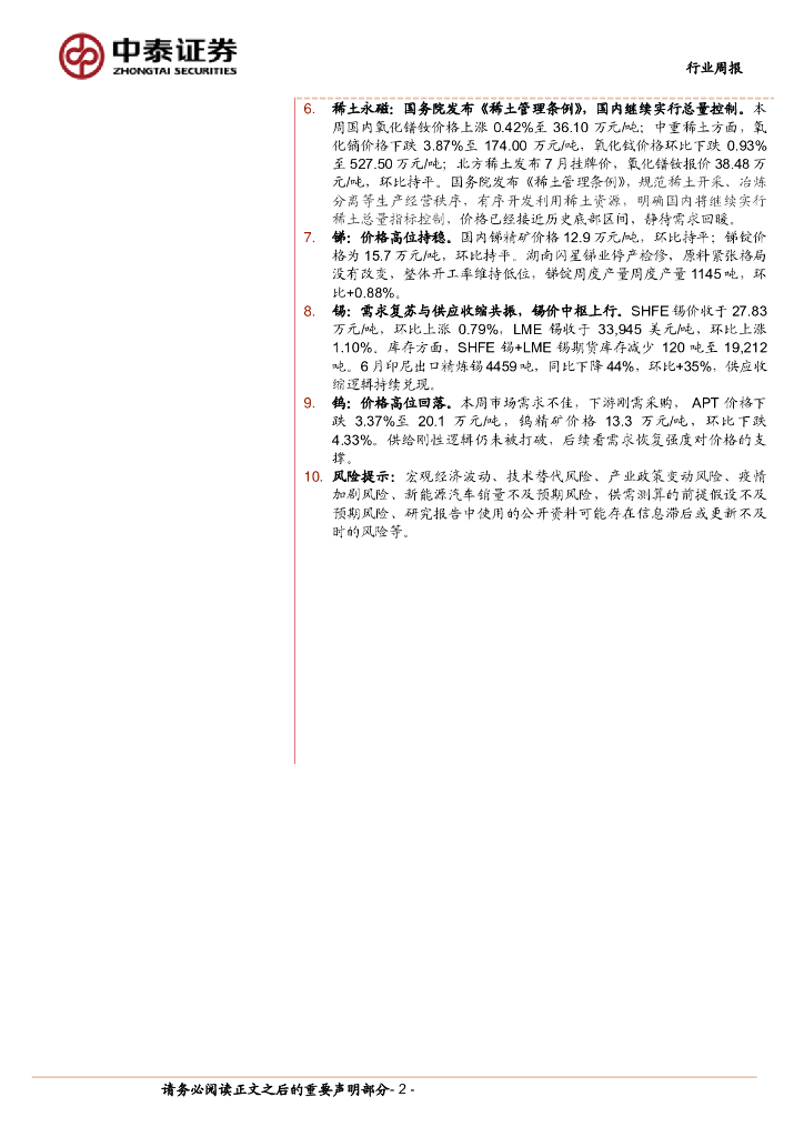 中泰证券:有色金属行业周报:印尼6月锡锭出口同比降44%,延续供应趋紧格局.pdf