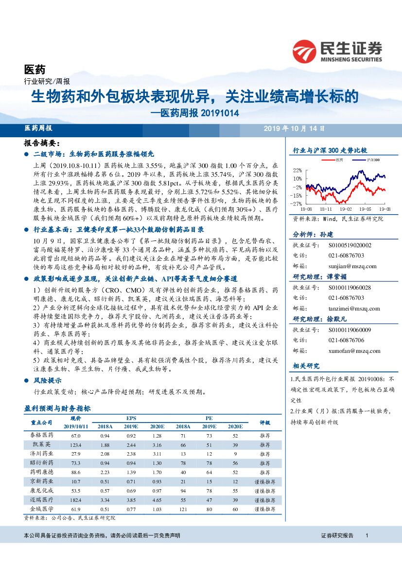 民生证券:医药周报:生物药和外包板块表现优异,关注业绩高增长标的.pdf