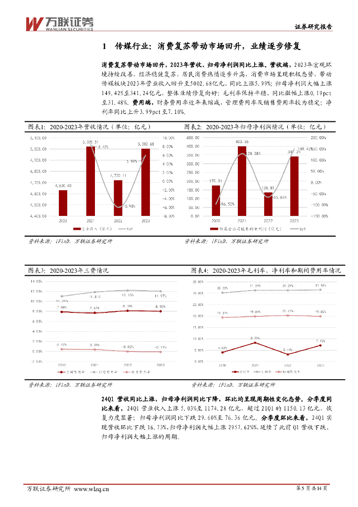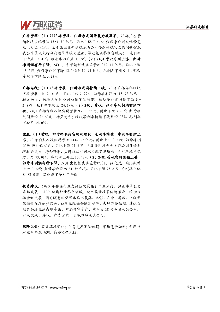 万联证券:传媒行业23年年报及24年一季报综述:业绩有所修复,板块龙头公司表现亮眼.pdf
