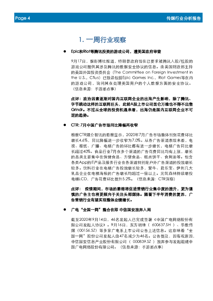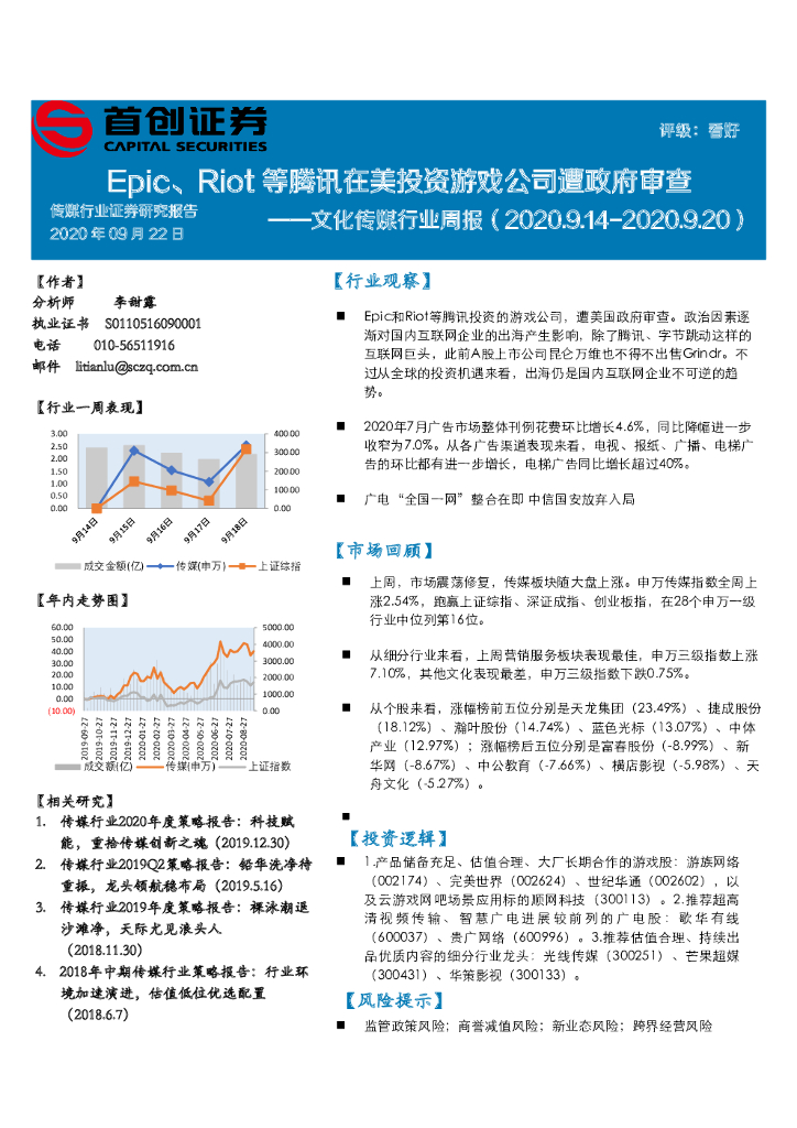 首创证券:文化传媒行业周报:Epic、Riot等腾讯在美投资游戏公司遭政府审查.pdf