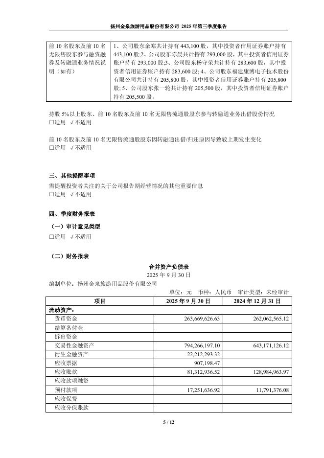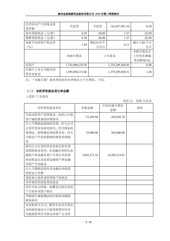 603307-扬州金泉:扬州金泉2025年第三季度报告.pdf