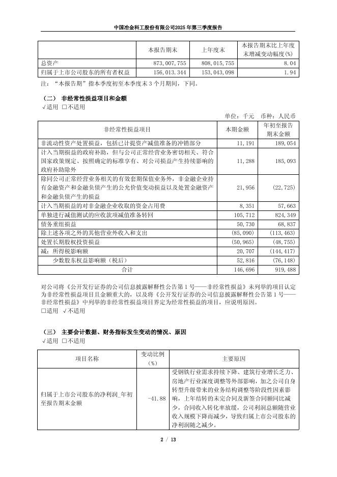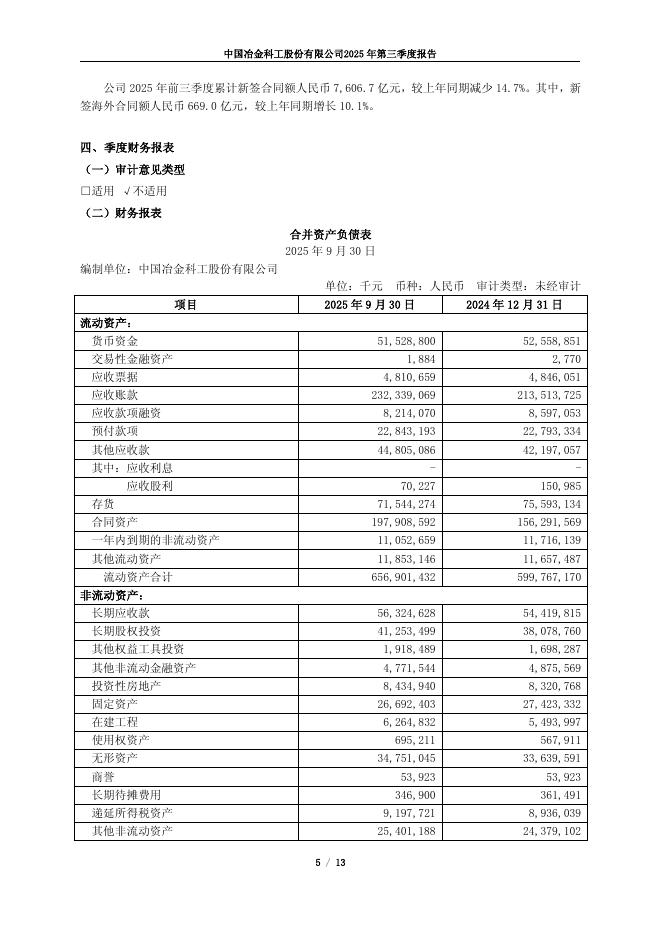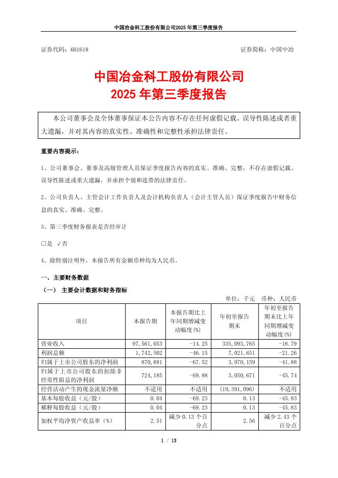 601618-中国中冶:中国中冶2025年第三季度报告.pdf