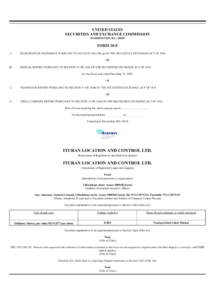Ituran Location and Control Ltd.(ITRN)2020财年年度报告(英文版).pdf