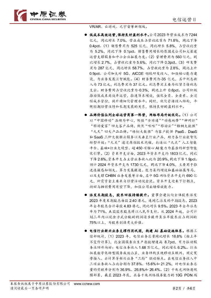 中原证券:中国移动(600941)-年报点评:营收破万亿,拓展“AI+”战略布局.pdf