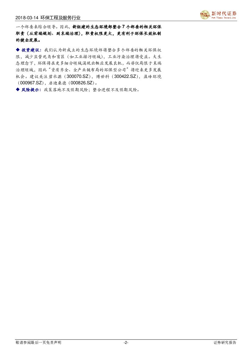 新时代证券:环保行业动态点评:生态环境部整合“多部委的环保职责”,减少环保监管死角及盲区.pdf
