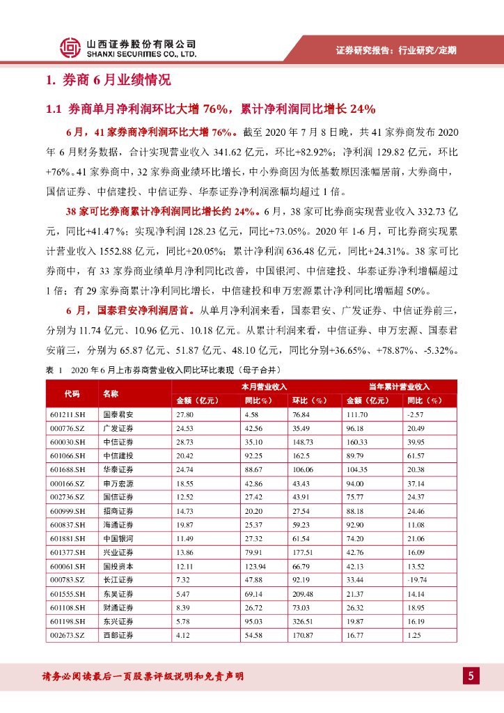 山西证券:证券行业6月业绩分析:6月业绩环比大增76%,继续推荐券商.pdf
