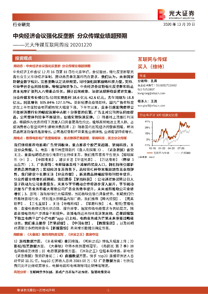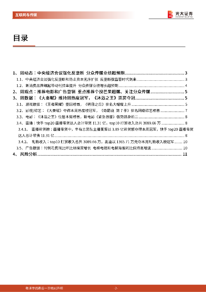 光大证券:光大传媒互联网周报:中央经济会议强化反垄断 分众传媒业绩超预期.pdf