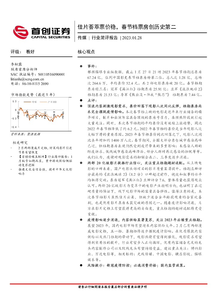 首创证券:传媒行业简评报告:佳片荟萃票价稳,春节档票房创历史第二.pdf