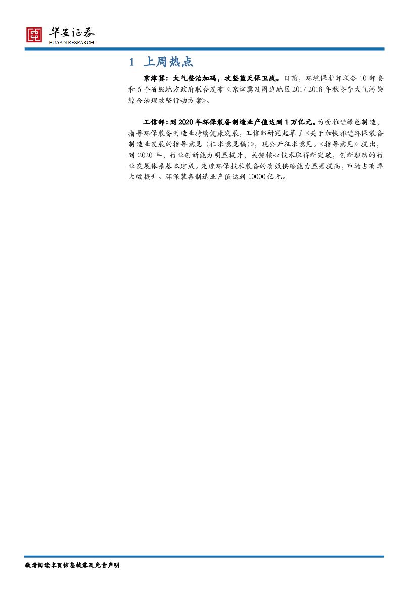 华安证券:环保行业周报:京津冀大气攻坚,看好环保需求释放.pdf