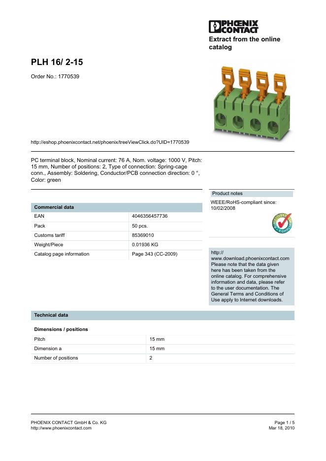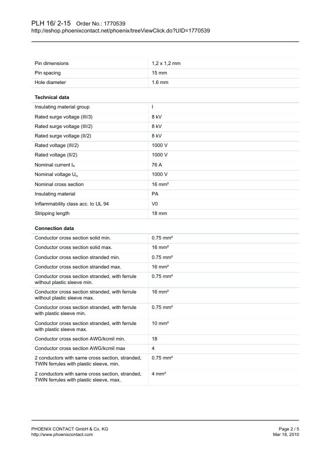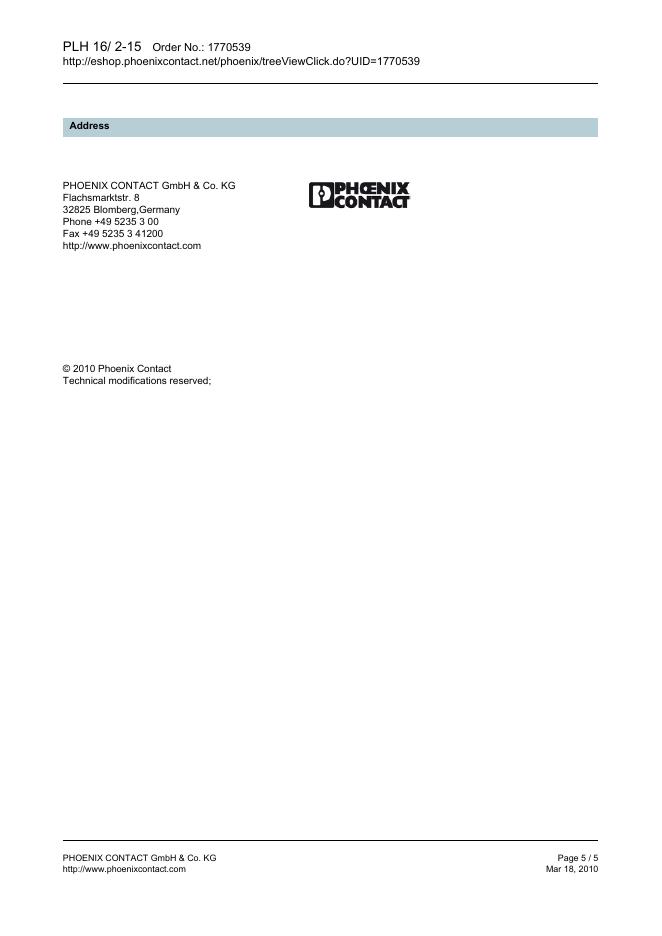 PHOENIX CONTACT PLH 16/ 2-15 Order No.: 1770539 数据手册.pdf