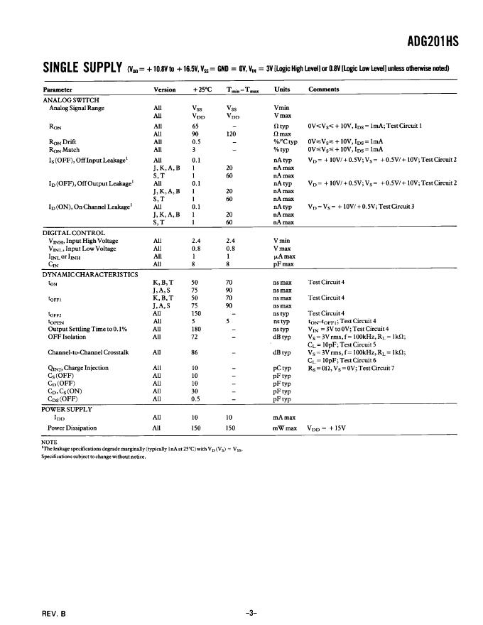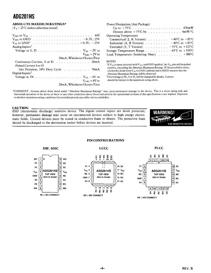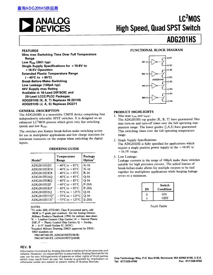 ANALOG DEVICES ADG201HS LC2MOS high speed quad SPST Switch 数据手册.pdf