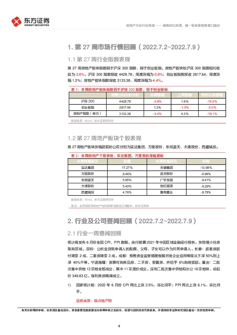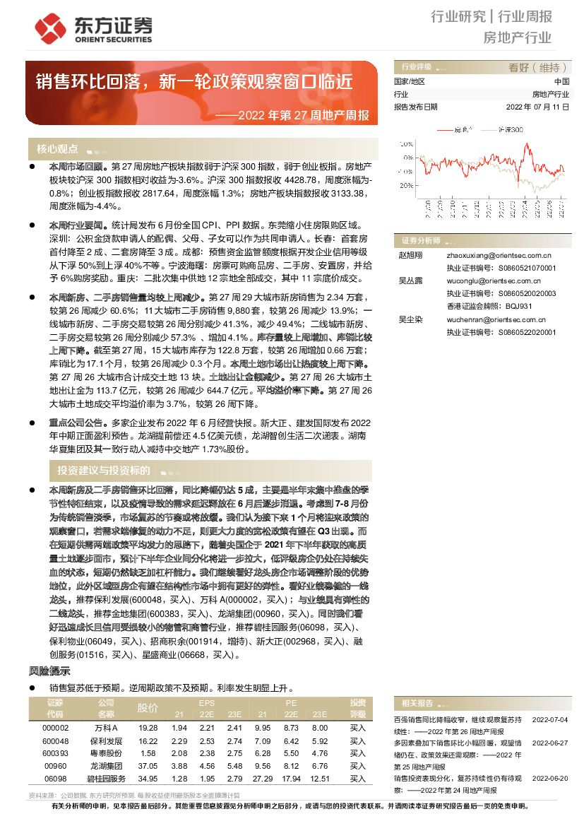 东方证券:房地产行业2022年第27周地产周报:销售环比回落,新一轮政策观察窗口临近.pdf
