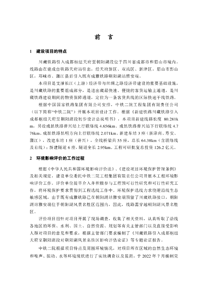 川藏铁路引入成都枢纽天府至朝阳湖段环境影响报告书(征求意见稿).pdf