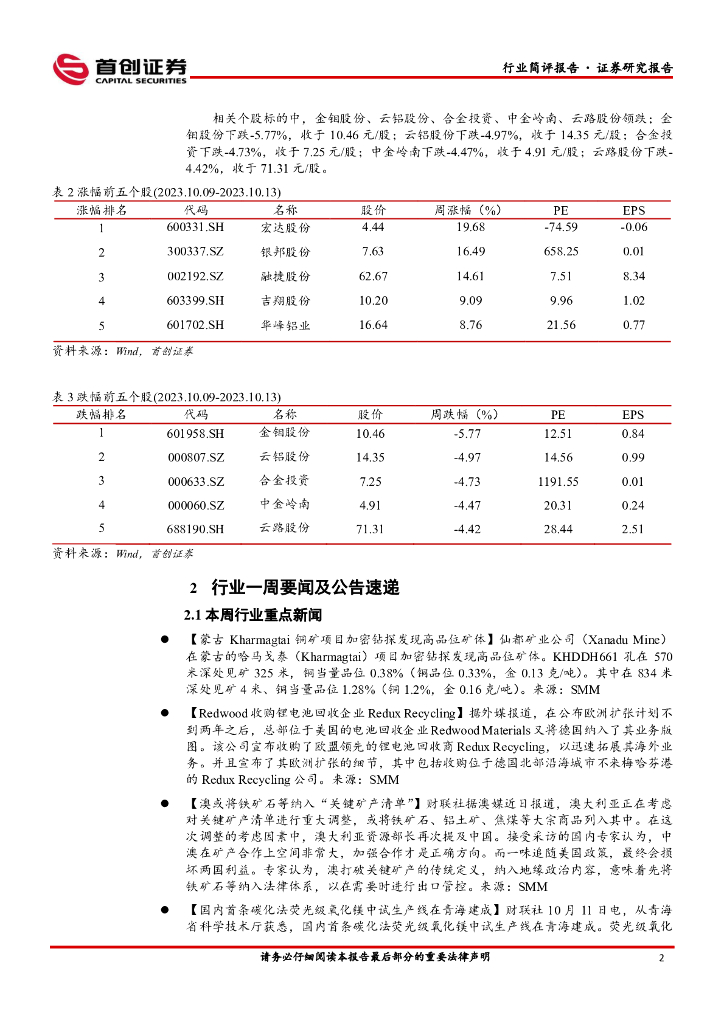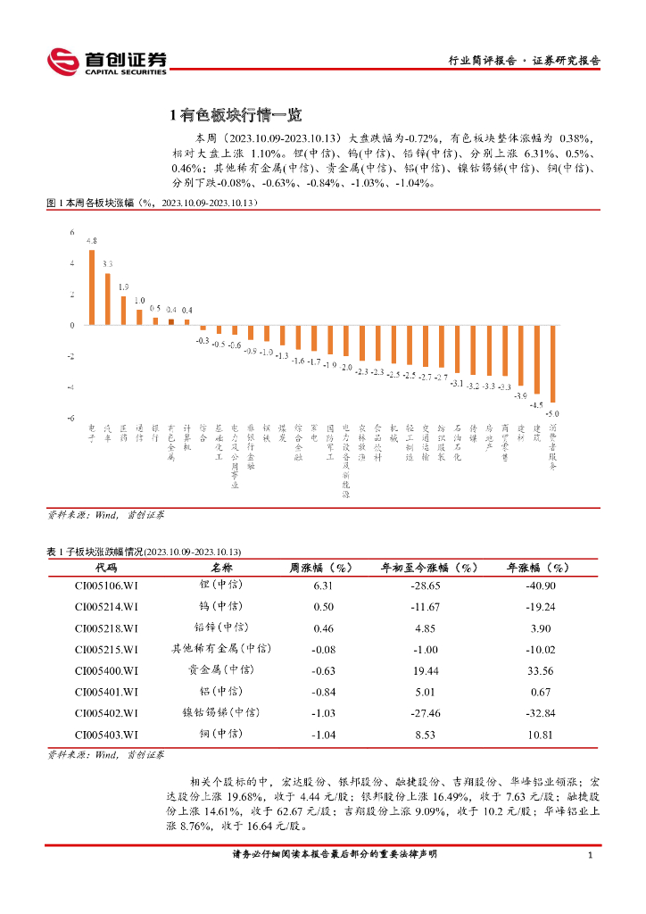 首创证券:有色行业周报:电解铝供给弹性低 铝价料偏强运行.pdf