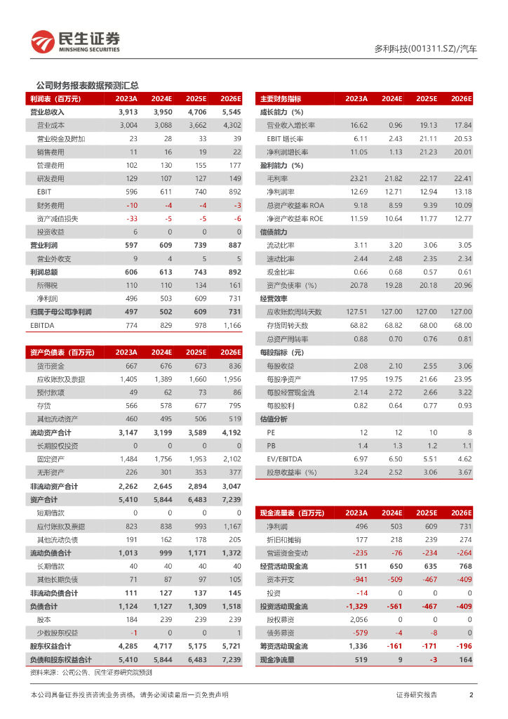 民生证券:多利科技(001311)-系列点评二:2024Q3业绩符合预期一体化压铸蓄势待发.pdf