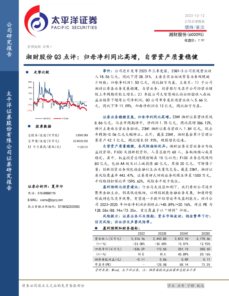 太平洋证券:湘财股份Q3点评:归母净利同比高增,自营资产质量稳健.pdf