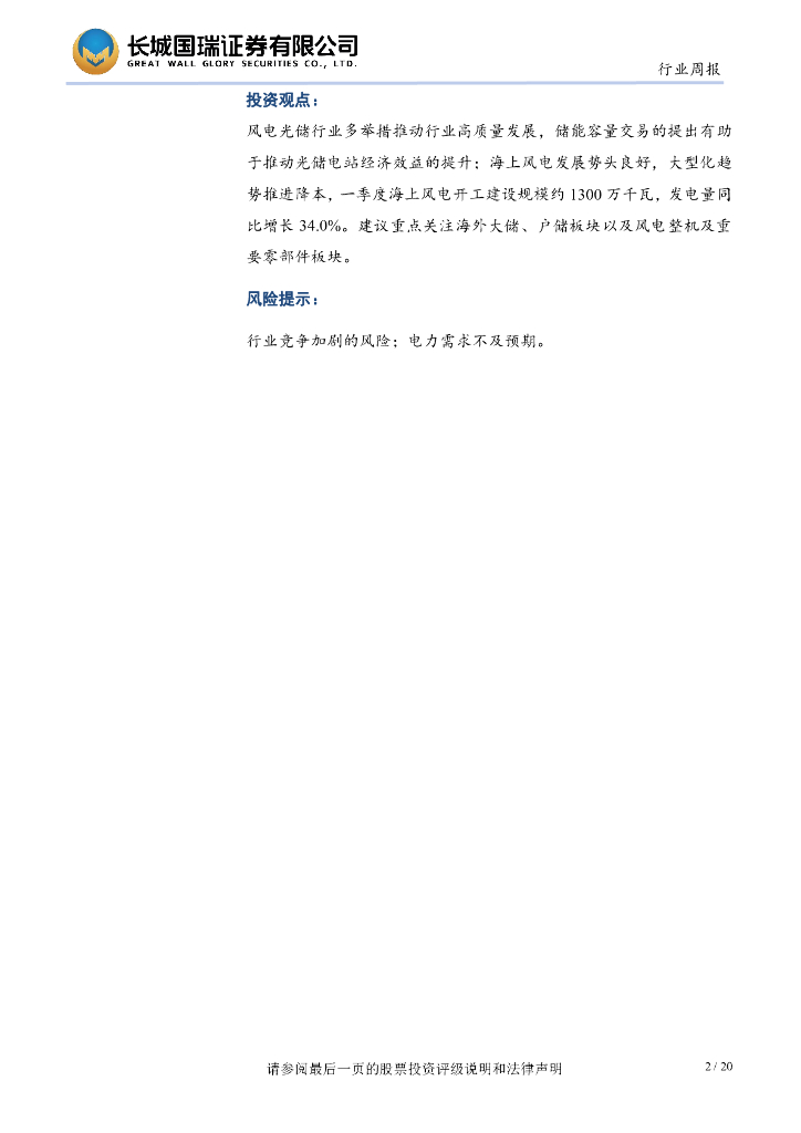 长城国瑞证券:电新行业双周报2024年第11期总第33期:风电光储行业利好消息频发多举措推动行业高质量发展.pdf