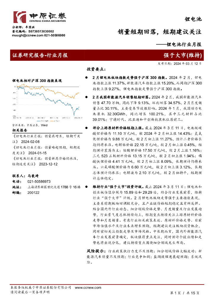 中原证券:锂电池行业月报:销量短期回落,短期建议关注.pdf