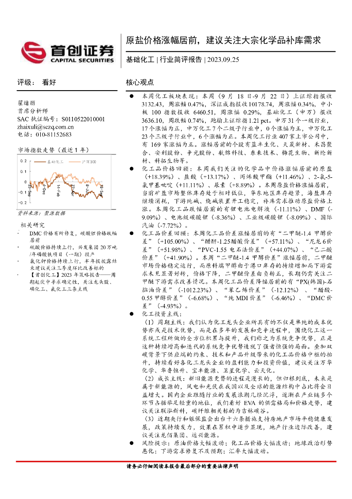 首创证券:基础化工行业简评报告:原盐价格涨幅居前,建议关注大宗化学品补库需求.pdf