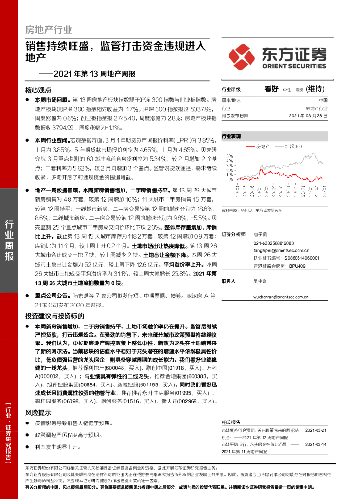 东方证券:房地产2021年第13周地产周报:销售持续旺盛,监管打击资金违规进入地产.pdf