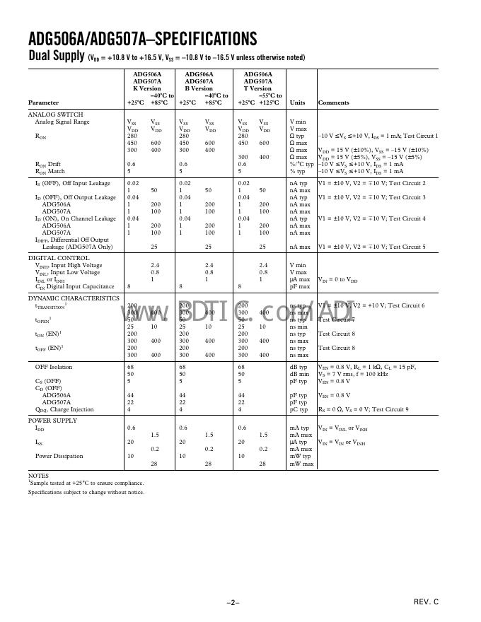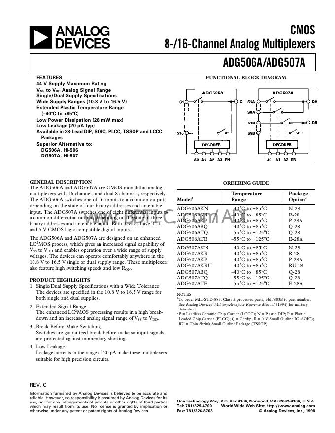 ANALOG DEVICES ADG507A 数据手册.pdf