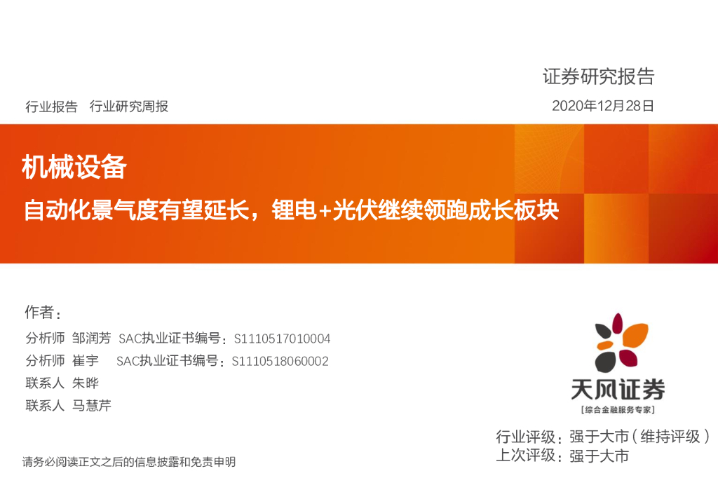 天风证券:机械设备行业:自动化景气度有望延长,锂电+光伏继续领跑成长板块.pdf